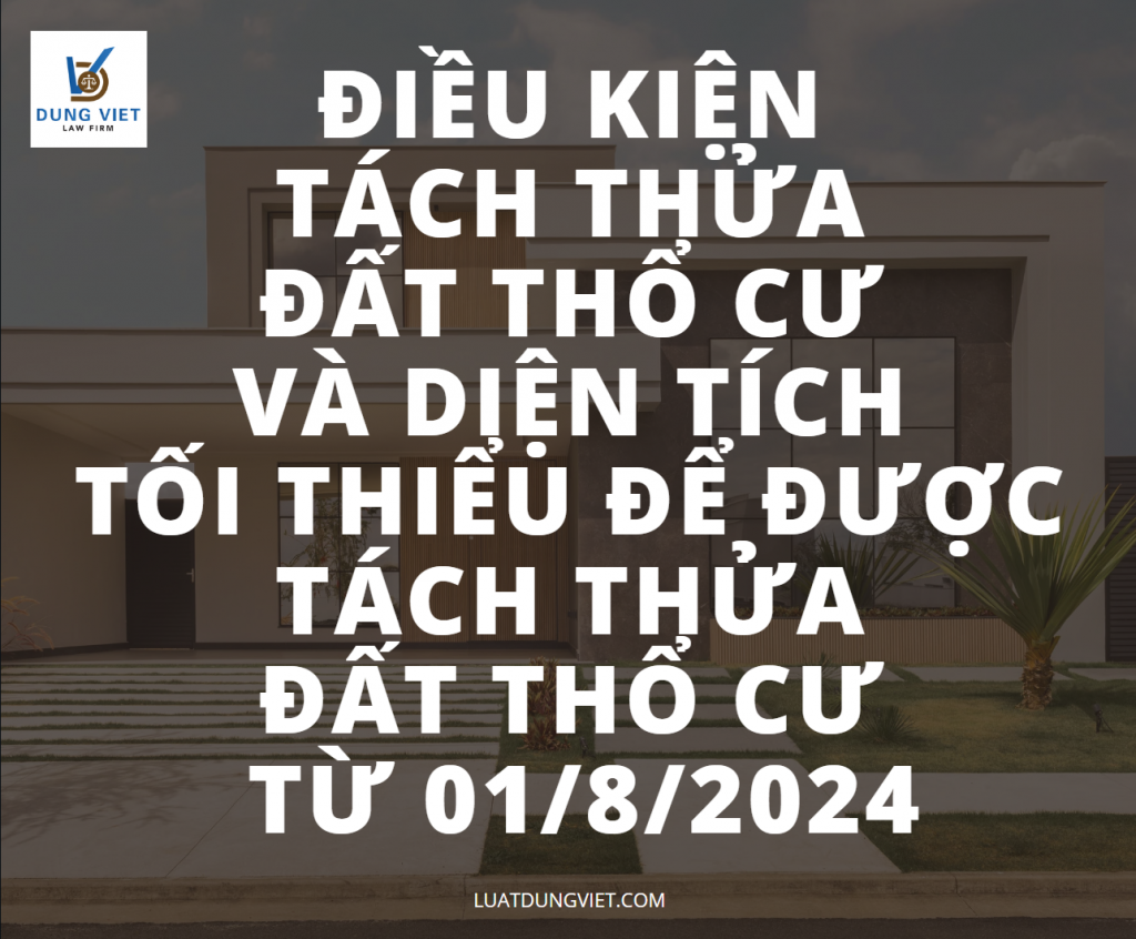 ĐIỀU KIỆN TÁCH THỬA ĐẤT THỔ CƯ VÀ DIỆN TÍCH TỐI THIỂU ĐỂ ĐƯỢC TÁCH THỬA ĐẤT THỔ CƯ TỪ 01/8/2024