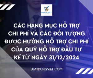 CÁC HẠNG MỤC HỖ TRỢ CHI PHÍ VÀ CÁC ĐỐI TƯỢNG ĐƯỢC HƯỞNG HỖ TRỢ CHI PHÍ CỦA QUỸ HỖ TRỢ ĐẦU TƯ KỂ TỪ 31/12/2024